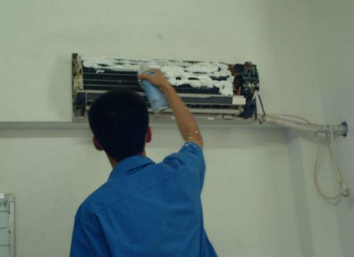 | 河池市空调维修师傅给河池市用户上门维修清洗空调。 |